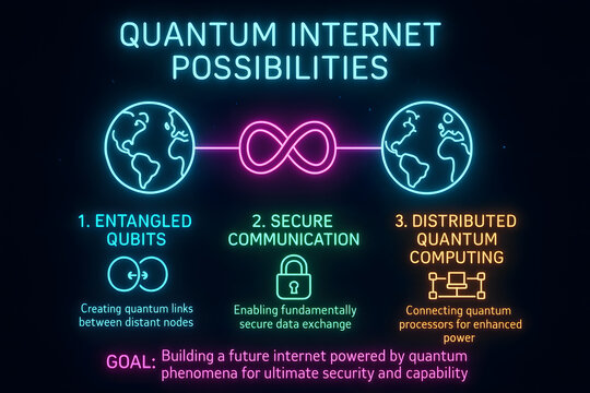 Big data analytics and high-speed communication technology illustration with dynamic data flow, digital information stream, quantum computer qubits, futuristic network, advanced internet concept
