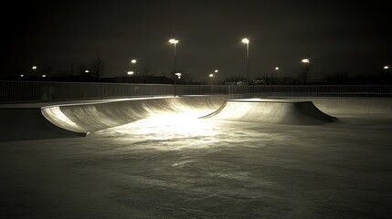 stock photo of Modern outdoor skatepark structure with smooth surfaces