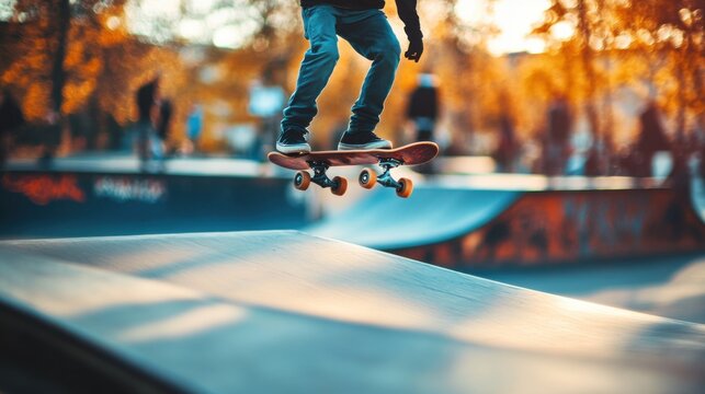 Skateboarders launching off ramp with sparkling bokeh lights urban action duo midair tricks skatepar