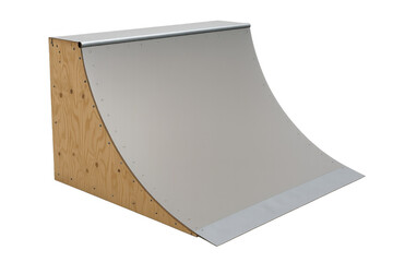 Realistic photograph of a complete Skateboarding ramps,solid stark white background, focused lighting