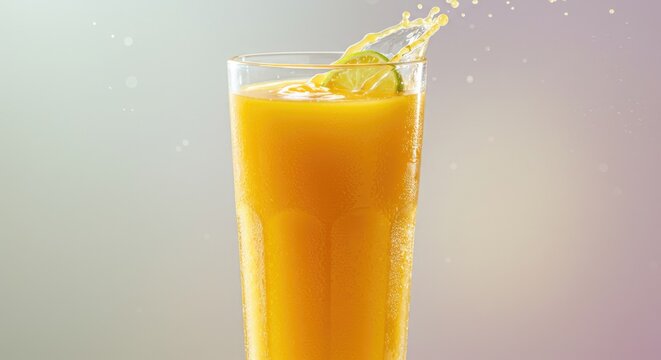 Refreshing Mango Juice Splash with Lime Garnish in a Glass