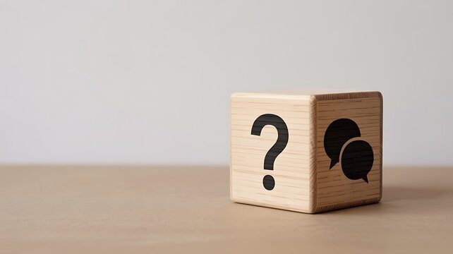 Questions & Answers: Wooden Block with Question Mark and Speech Bubbles