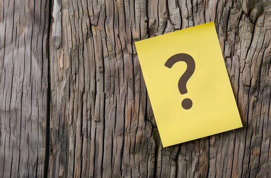Yellow sticky note with a question mark on it. The note is placed on a white surface