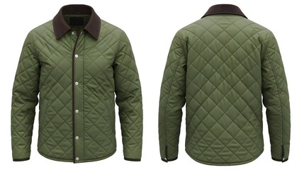 A stylish young woman wearing sunglasses, a green quilted jacket