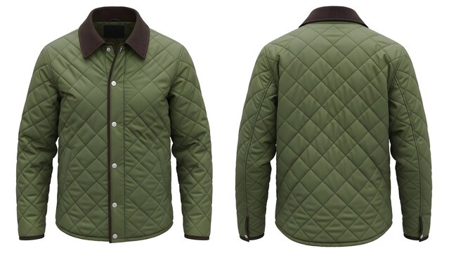 A woman reviews a jacket. She has spread the flaps of the jacket to the sides. Quilted long jacket. Close-up.