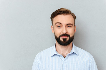 Quizzical bearded man in business clothes looking at the camera