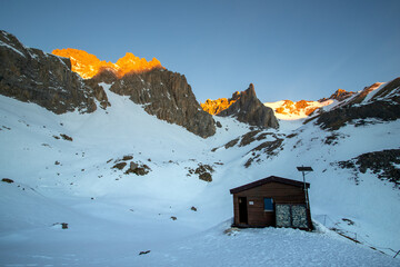 alba ad alta quota con vista sul bivacco valmaggia e le cime delle alpi cozie