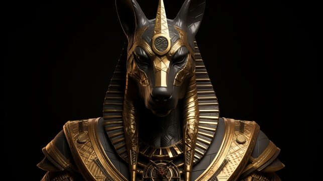 metal golden statue of the Egyptian sun god Ra on a black background with smoke