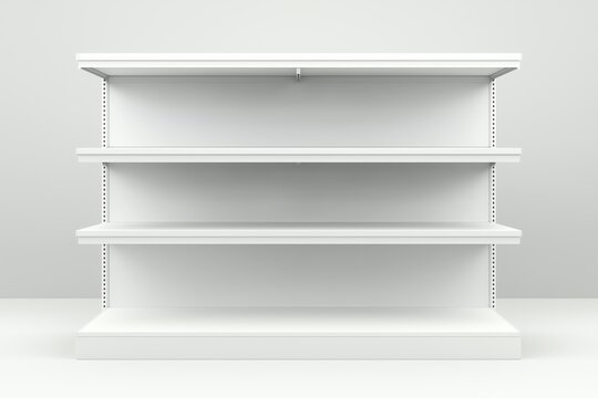 white isolated empty 3D rendering showcase background podium racked display shop blank store market shelf supermarket retail rack equipment shelving.