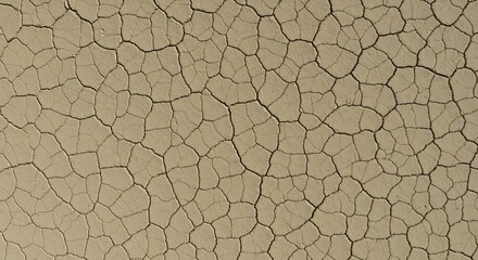 Closeup of cracked dry earth with irregular polygon patterns on a light brown surface