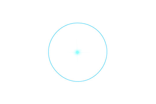 Blue glowing digital target with radiating light and concentric circle, representing focus, data, and technology on transparent background