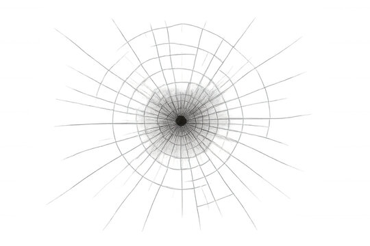 Broken glass with a central bullet hole, shattered impact, and radial cracks on a transparent background