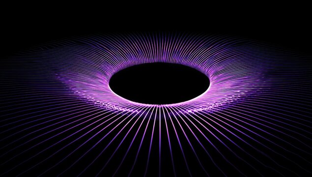 Radiating neon particle vortex visualizing data flow in radial digital cyberspace tunnel