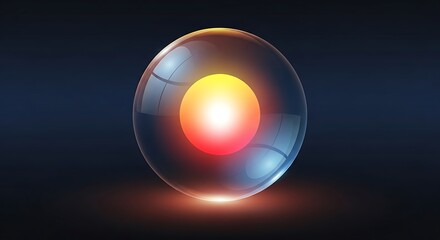 Luminous sphere with glowing core on dark background.