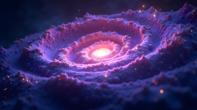 A mesmerizing spiral galaxy with vibrant purple hues, emanating a radiant glow from its core, creating a cosmic wonder.