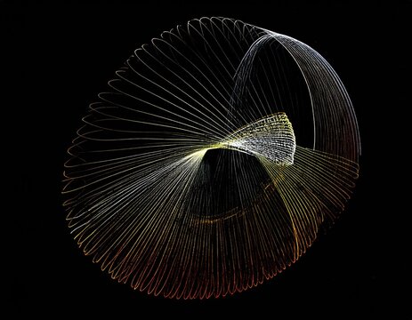 Abstract spiral design with radiating lines,  light gradients from white to gold