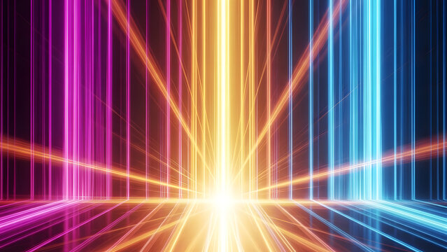 Vibrant light beams radiating from a central source