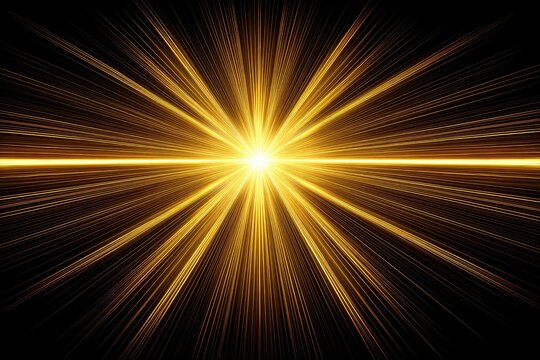 Radiating red starburst laser beams over dark horizon casting radial light across field