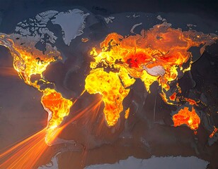 A fiery world map, glowing intensely, radiating light from its edges