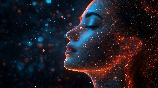 Virtual mind network with radiating intelligence nodes and sleek cyber lines