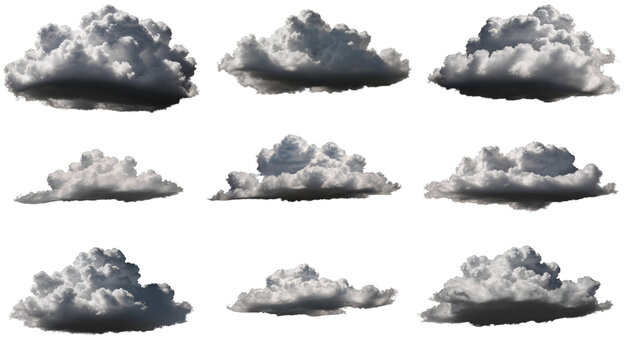 Set of dark rain clouds isolated on transparent background