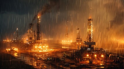 Oil Rig in a Rainstorm at Night