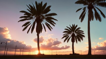 Cushioned palm tree on sky establishment conditioned in energetic drenched rainbow neon pastel colors. Creative resource, AI Generated