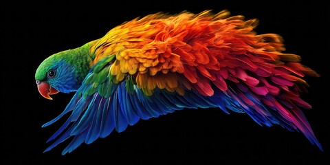 Lorikeet in rainbow hues, dynamically posed.