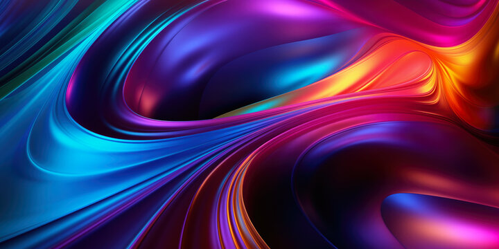 3d abstract wallpaper. Liquid metal rainbow waves banner. Three dimensional rainbow colored swirls background