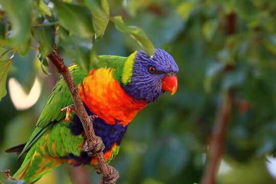 Colorful rainbow lorikeet perched on tree branch