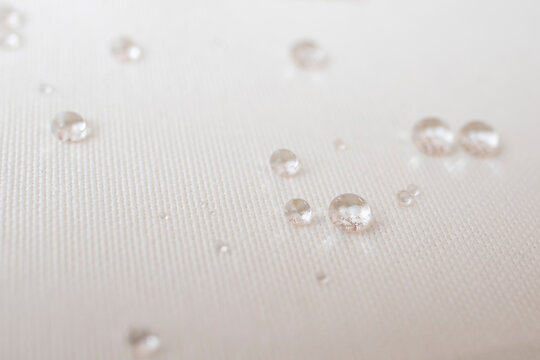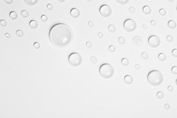 Clear water drops on white canvas