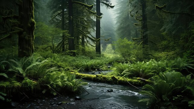 landscape pacific rainforest lush illustration environment tourism, beautiful northwest, trees scenic landscape pacific rainforest lush