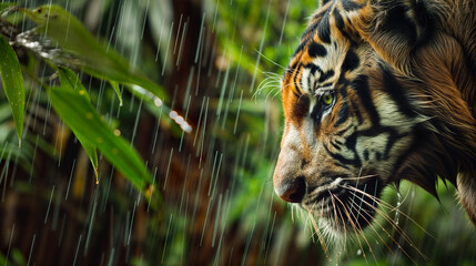 Tiger among tropical jungle foliage: digital art wildlife beauty