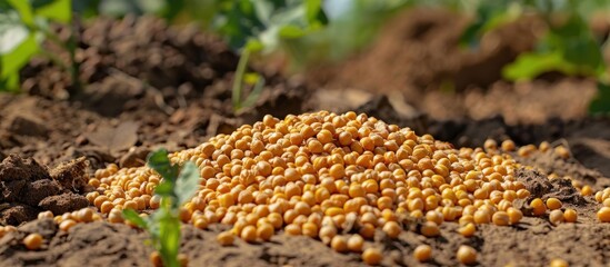 Selective focus early morning view of young corn and a farm with a double rainbow