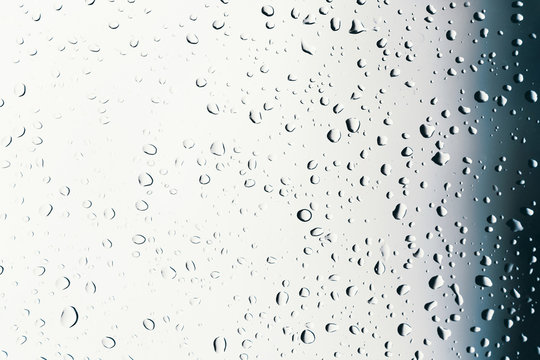 Close up of raindrops on window glass creating abstract texture background