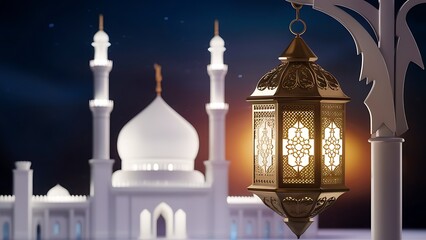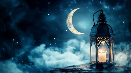 Ramadan Beautiful Night with Crescent Moon and Lantern – Islamic Decoration for Eid and Ramadan (1)