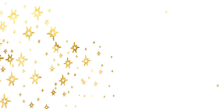 Golden stars foil glitter, Gold sparkle splatter border. Gold stars random luxury sparkling confetti.Gold Foil Frame Gold stroke on transparent background for wedding invitation.