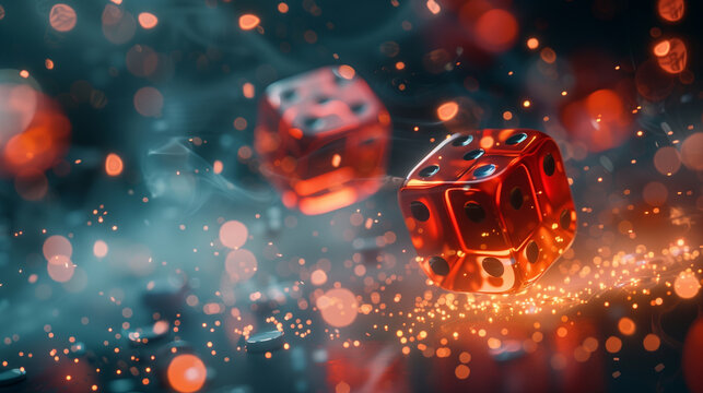 Two dice bouncing with sparks. Concept for probability and random choice. Casino gambling and gaming.