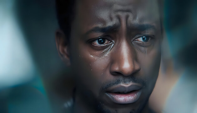 Random photo effects of a worried, adult African-American man crying. An atmospheric moment.