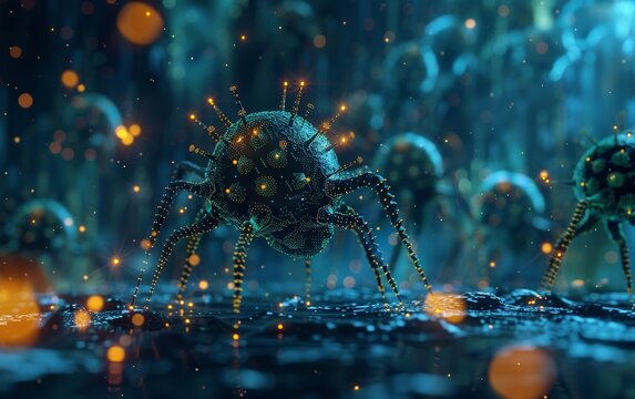 Digital bug icon on circuit network background