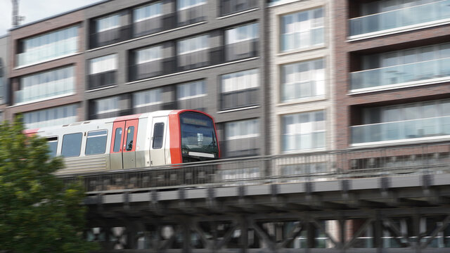 Abstract streaks of vibrant orange and yellow light blur through a dark futuristic cityscape at night creating a sense of rapid motion and urban energy