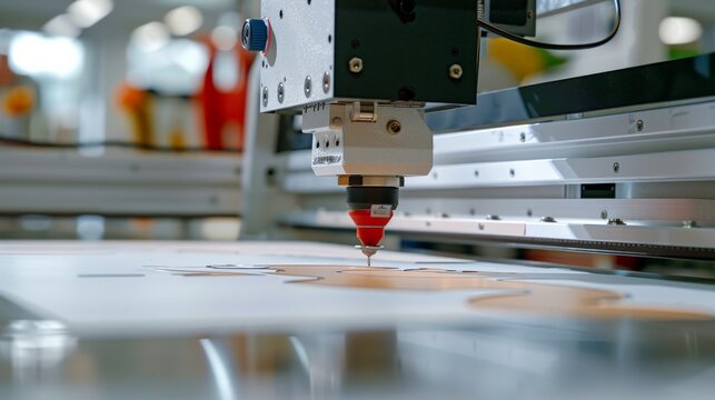 A sleek and modern office with a 3D printing lab and rapid prototyping capabilities