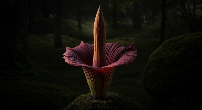Dramatic Corpse Flower Portrait: An Enigmatic Bloom in a Forest Setting