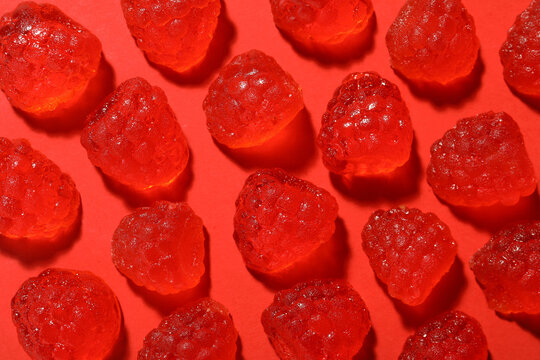 raspberry gummy in red on a white background
