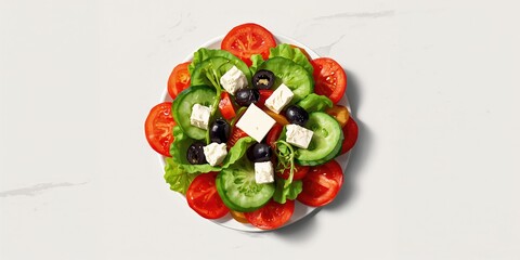 Traditional Greek or Horiatiki salad featuring fresh ingredients for balanced eating, food raster image