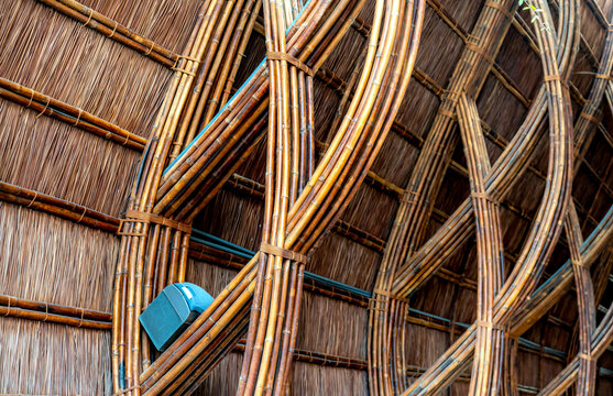Bamboo and rattan interior of a luxury cafe in coastal city of Nha Trang, Khanh Hoa province, Vietnam