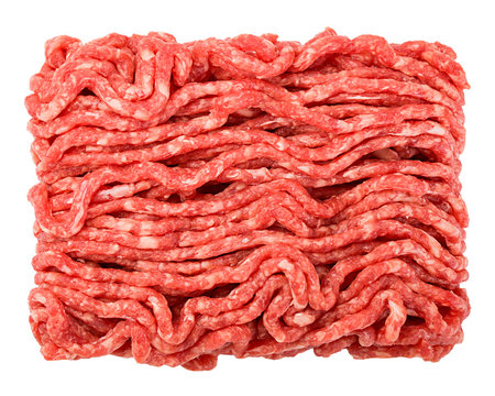 Fresh ground meat in a white tray with a sprig of parsley, top-down view