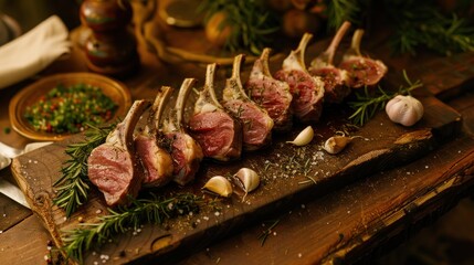 Fresh, raw meat cuts showcasing tender lamb chops with an appetizing red color, ideal for a gourmet cooking theme.