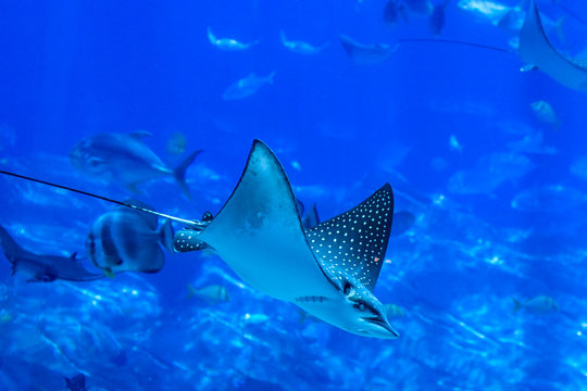cownose ray swimming in the water,