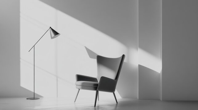 Elegant minimalist reading nook with minimal decor. Featuring clean lines and a cozy setup